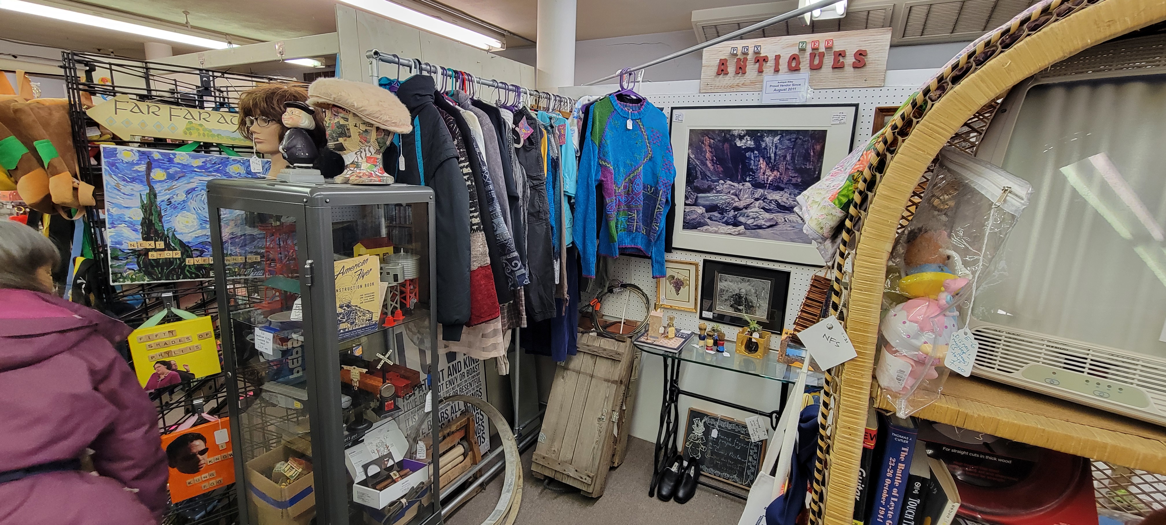 We like Antique Alley - the mall has a wonderful vibe to it. It's eclectic - old style vintage to Portland weird. Vendors put a lot of effort into making their space into something that catches the eye while expressing a bit of who they are. We especially like and appreciate the folks who run the Alley - from the owner Paul to the managers Cory, Tim and the rest of the staff. They all provide the stable, respectable base from which we sell from.